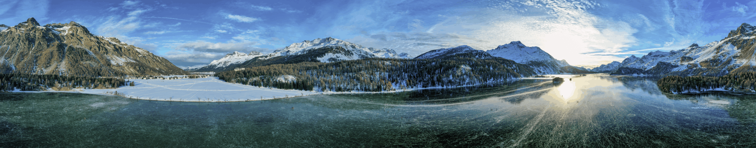360 Grand Panorama über dem Silsersee bei Schwarzeis.